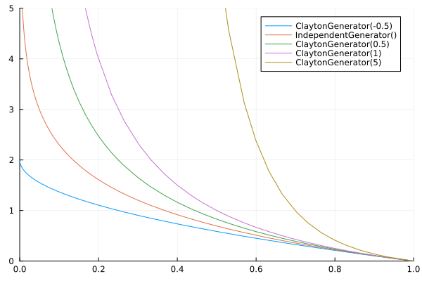 using Copulas: ϕ⁻¹,ClaytonGenerator,IndependentGenerator