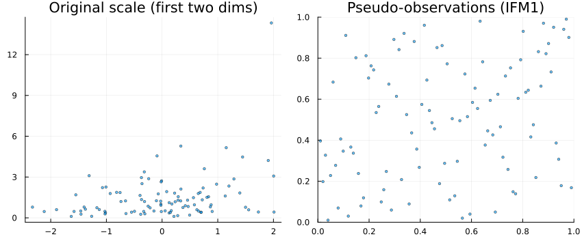 are estimated first, separately, through maximum likelihood on marginal data. Denote these estimators. Then, we fit the copula on pseudo-observations, which can be computed in two ways: IFM1: Use empirical ranks to compute the pseudo-observations.